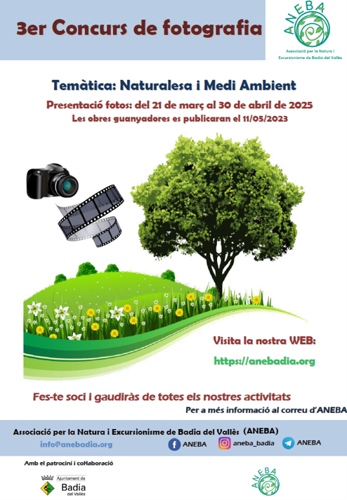 Tercer concurso de fotografía digital ANEBA con la temática Naturaleza y Medio Ambiente Primavera 2025. Actividad dirigida a tod@s las personas. Se podrán presentar 3 …
