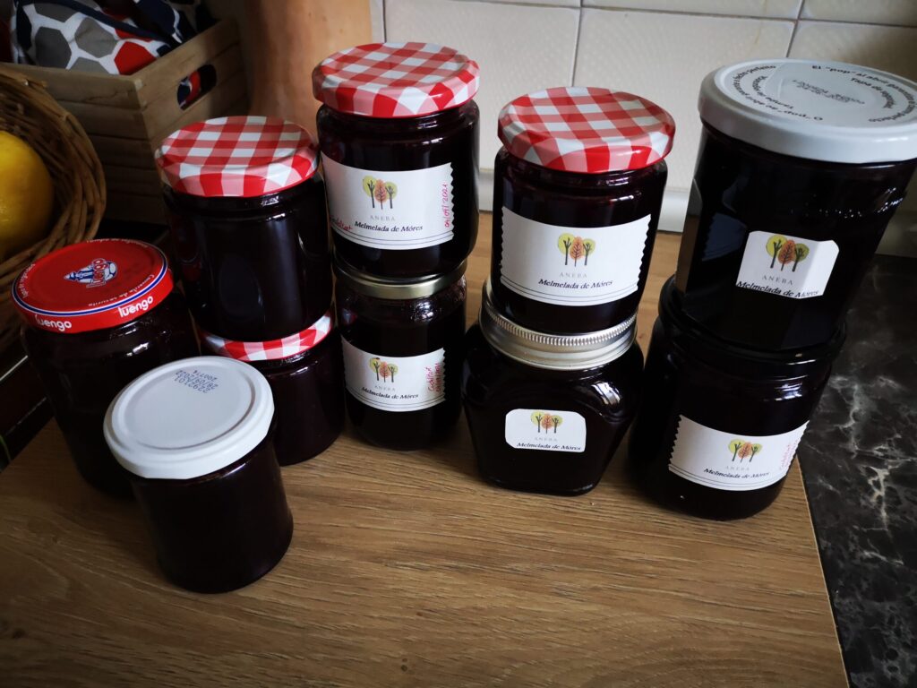 Realizamos mermeladas con frutas y frutos de temporada. Mermeladas de moras, fresas, meloconton, albaricoque, pomelo y de frambuesas. En la mayoría de los casos somos nosotros mismos los que recolectamos y posteriormente, elaboramos las mermeladas con diferentes aromas.