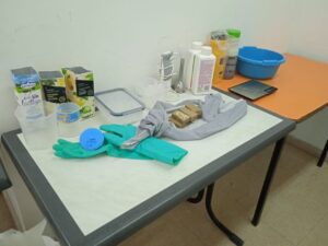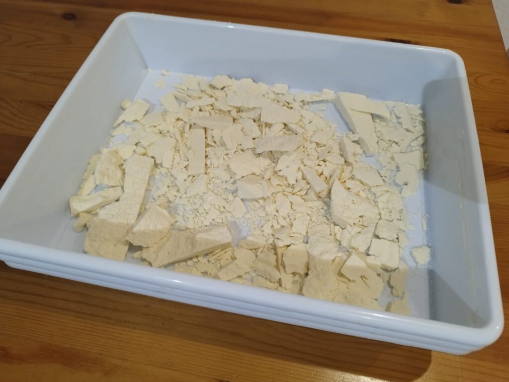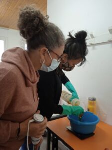 4-. Fase de elaboración de jabones sólidos, mezcla y saponificación.