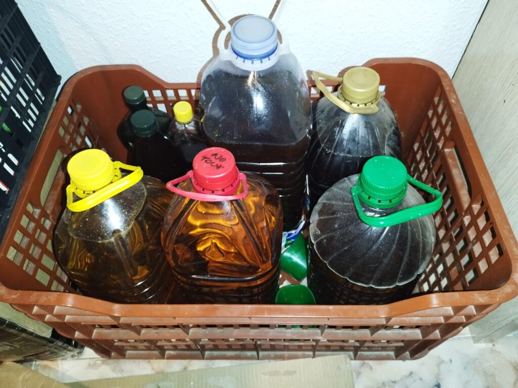 1-. Fase de recogida de aceite de oliva y de girasol de la fritura.